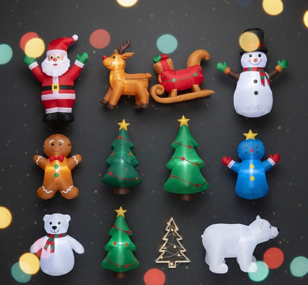 Bring holiday cheer outdoors with our collection of vibrant inflatables and festive décor. From playful characters to classic holiday displays, each piece is designed to stand out and spread joy. Easy to set up and built to shine all season long—perfect for creating a magical outdoor holiday experience.