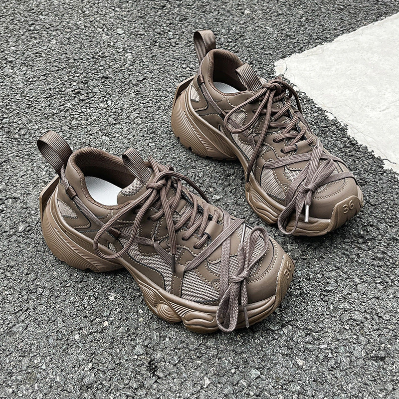 Leather Platform Shoes – Women's Lace-Up Genuine Leather Footwear With Fashion Heels