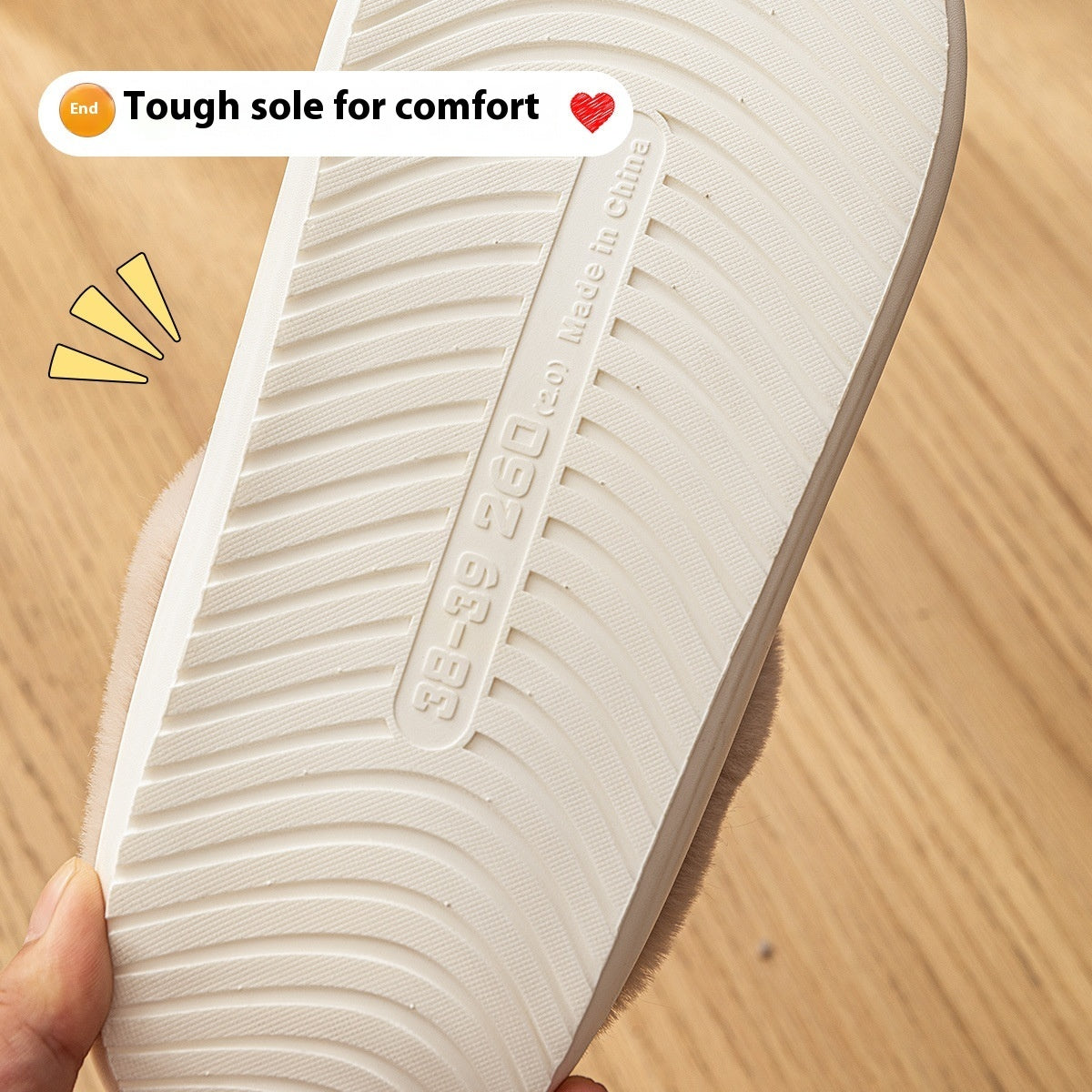 • Plush slippers crafted from soft cotton fabric for all-day gentle comfort